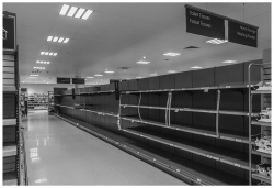 16th March 2020. Malvern, England. One of thousands of similar images from across the globe. Empty shelves. Some shoppers find it so absurd they can't help but laugh, others don't find it quite so amusing. [P Butler]