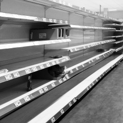 The last time I saw so many empty shelves was during the monetary union between the FRG and GDR. I read last week that people fight their fear of something unknown by having to become active somehow. [Thilo Seibt]
