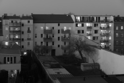 After the neighbours' children have gone to bed and the swifts have flown their rounds, it becomes quiet. The city has not yet found its rhythm again. [Thilo Seibt ]
