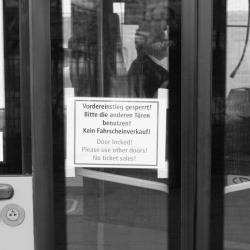 The buses are still running here at the moment. To protect the driver, everyone must get in the back. [Thilo Seibt]